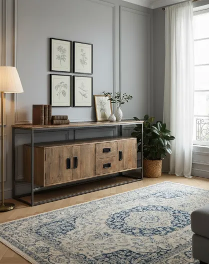 Opengewerkt dressoir 3 deuren 2 laden Mango Stockholm bruin - 180x40x80 cm