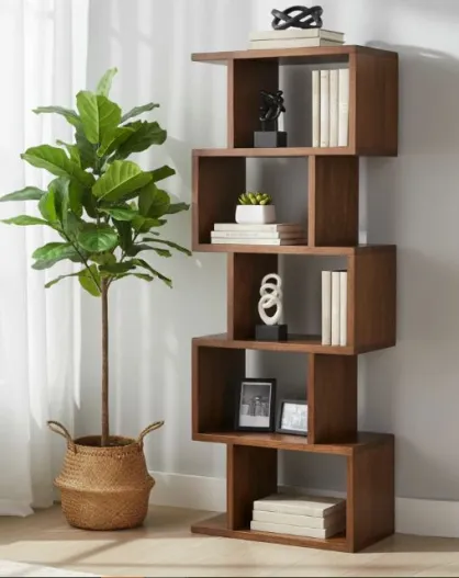 Alan bruine grote boekenkast van mangohout - 55x30x150 cm