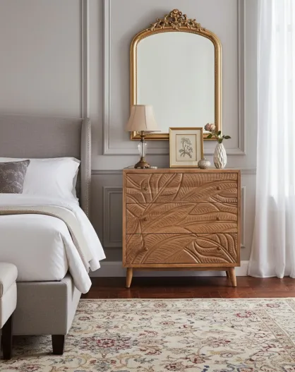 Uitgesneden dressoir met 3 laden Manguier Floria II bruin - 85x42x85 cm