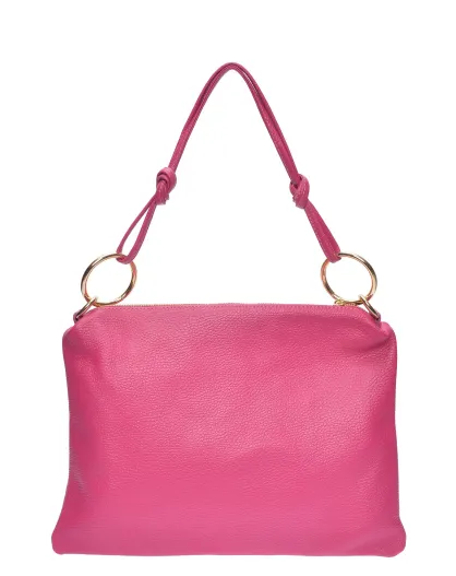 Louna fuchsia leren schoudertas - 25,5x35cm