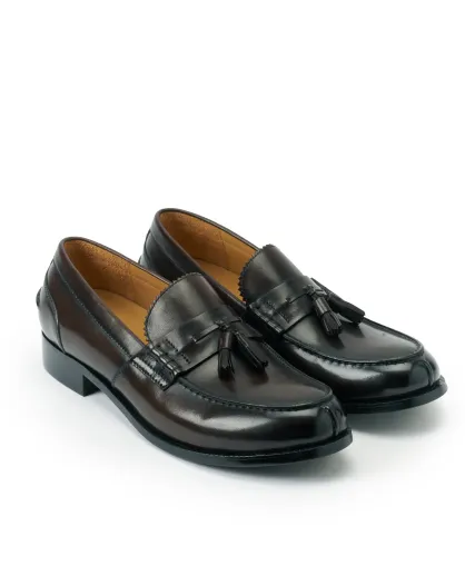 Donkerbruine leren Aloïs instappers met kwastjes