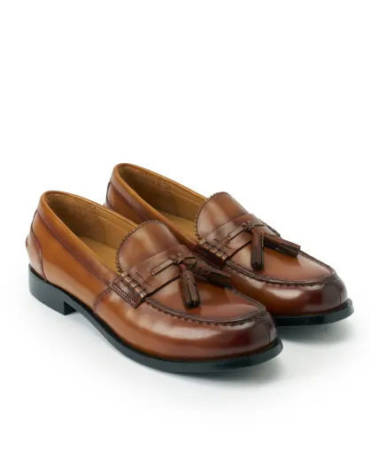 Sixtijnse leren instappers met kwastjes in bruin
