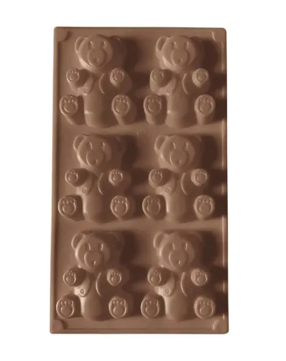 Bruine siliconen happy cake minibeervormpjes voor 6 - 26x17x1,8 cm