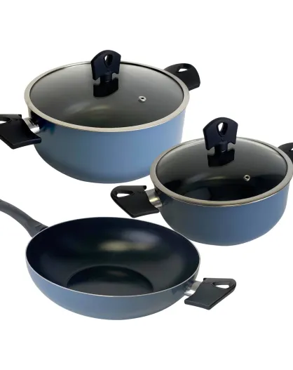 Set van 2 blauwe potten met deksel + wok