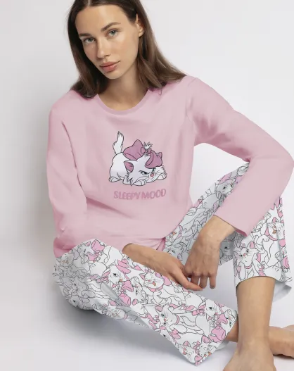 Slaperige roze pyjama met lange mouwen met Marie-patroon