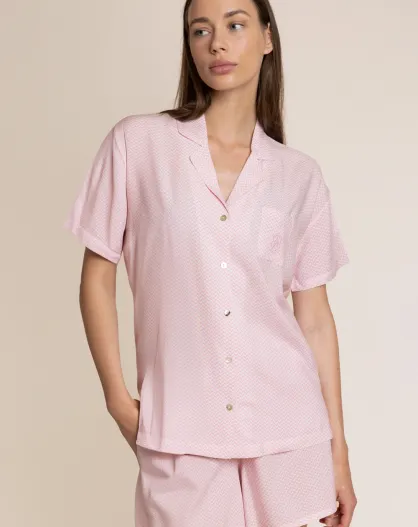 Klassieke roze pyjamaset met korte open mouwen