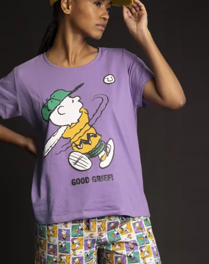 Peanuts Good Grief paarse pyjama met korte mouwen