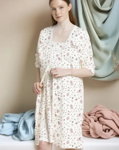 Disney Lady Mum negligé met Franse mouwen ecru roze bloemenprint