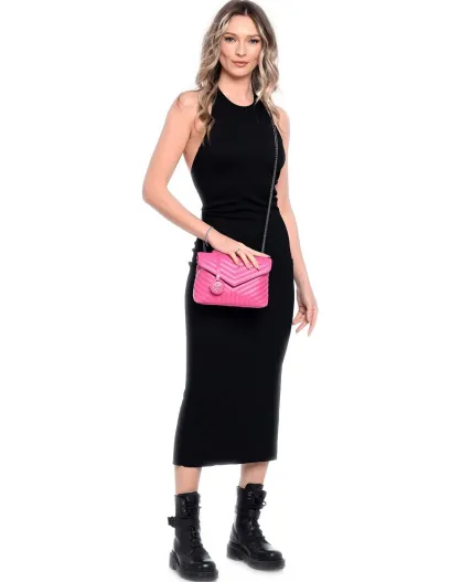 Eleonora fuchsia leren schoudertas - 16x21x8 cm