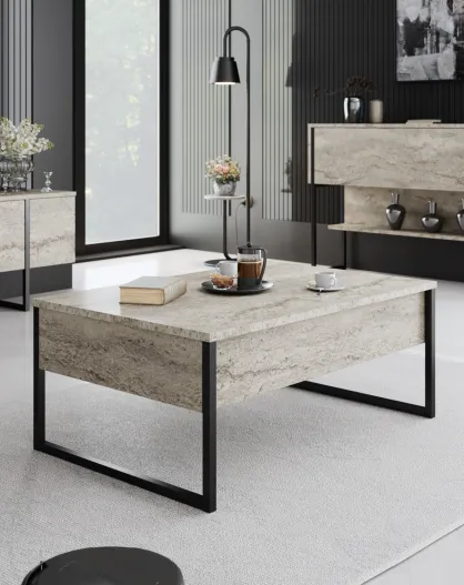 Luxe salontafel in travertijn/zwart - 90x60x40 cm