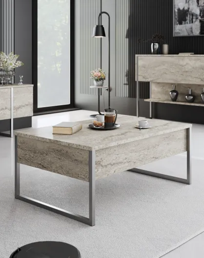 Luxe salontafel in travertijn/zilver - 90x60x40 cm