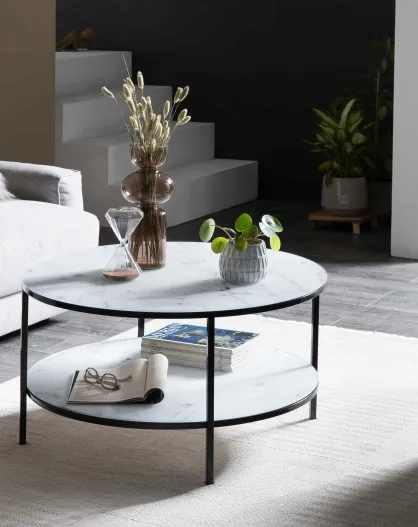 Fever - Salontafel met 2 planken wit/zwart - D.80 cm