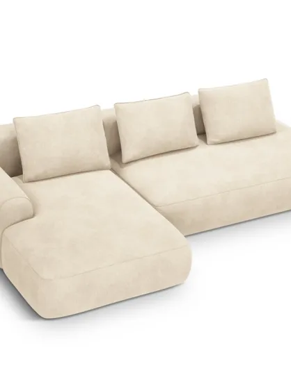 Orion 5-zits converteerbare fluwelen hoekbank met kofferbak lichtbeige - 275x142x84 cm