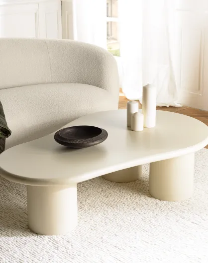 Salontafel met beige betoneffect in organische vorm - 130x80x35,5 cm