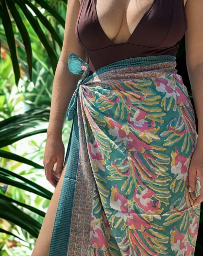 Pondichery sarong in groene katoenen voile