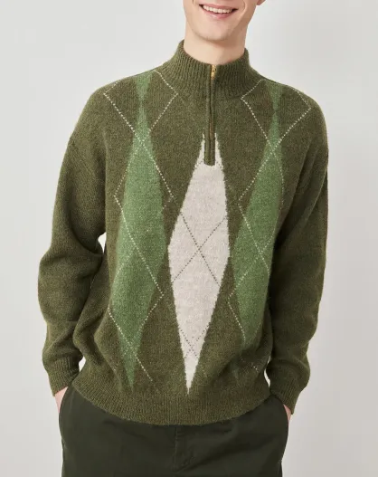 Ronnie trui van kaki jacquard-alpacamix