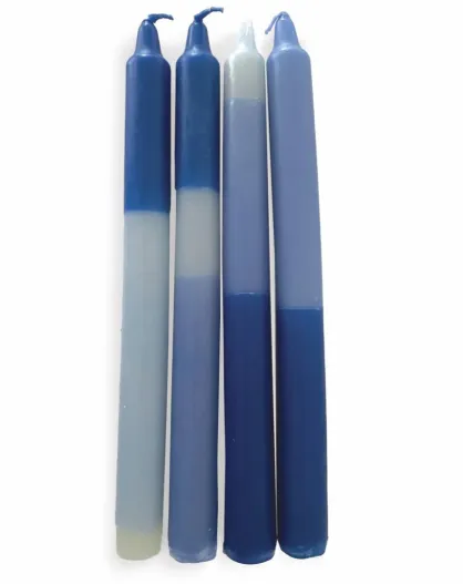 4 kleurrijke blauwe tweekleurige kaarsen - H25cm