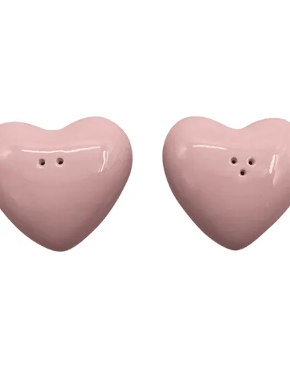 Love Story roze peper- en zoutduo - 6,5x7x2 cm
