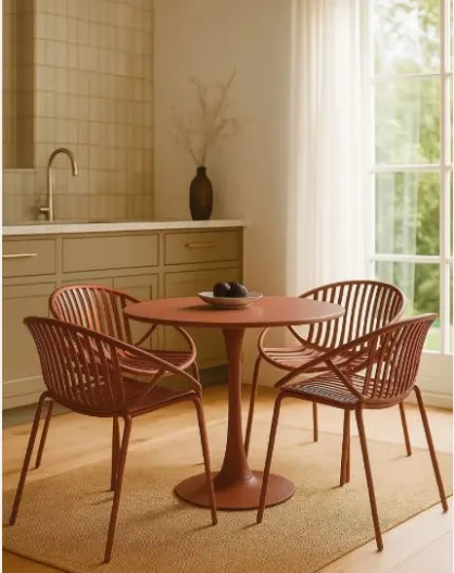Set van 4 tafelstoelen in polypropyleen en metaal Calypso brick - 65x58x78 cm