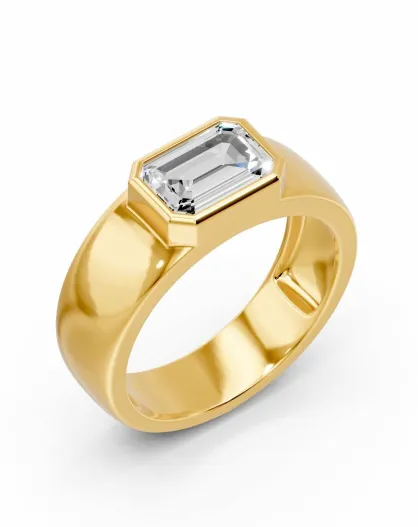 2,50 karaat Bellagio Emerald Cut synthetische diamanten zegelring geelgoud