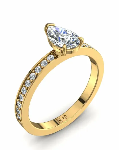 Solitaire natuurlijke peerdiamant en ronde natuurlijke diamanten 0,65 karaat Noémie Yellow Gold