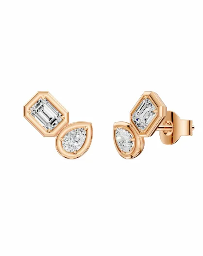 Oorbellen met synthetische diamanten Smaragden en peren synthetische diamanten 0,75 karaat Rosella roségoud