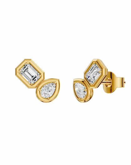 Oorbellen met synthetische diamanten Smaragden en peren synthetische diamanten 0,75 karaat Rosella geelgoud