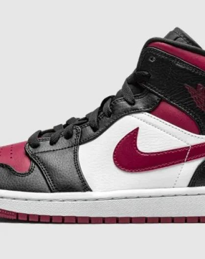 Air Jordan 1 Mid zwart/rode bordeauxrode en witte sneakers