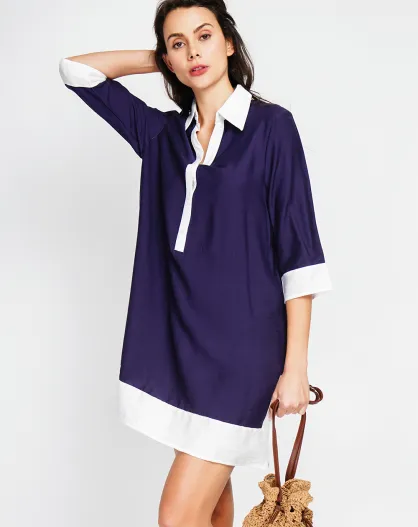 Bernadette marine tweekleurige linnen hemdjurk