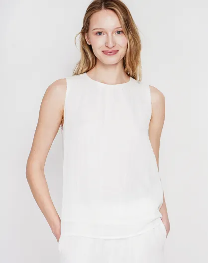 Sandrine witte linnen S- en M-top met ronde hals