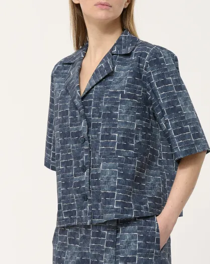 Marineblauw Bao kort hemd van katoen met neo-ruitjes