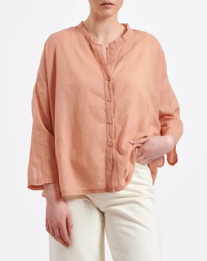 Tiriane sorbet - Oversized hemd van oudroze katoenvoile