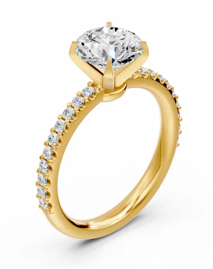 1.50 karaat Clotilda geelgoud synthetische solitaire met diamanten schouders