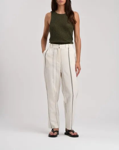 Bart ecru gestreepte katoenen wortelbroek