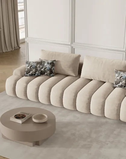 Simona 4-zits converteerbare fluwelen bank met opbergbox lichtbeige - 250x100x84 cm