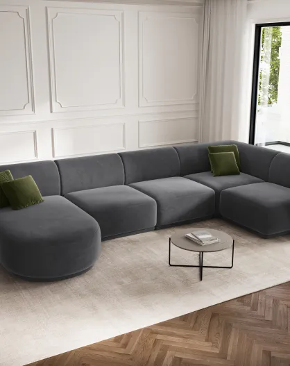 Panoramische hoekbank (rechterzijde) Louis velvet 6 zits donkergrijs - 336x166x74 cm
