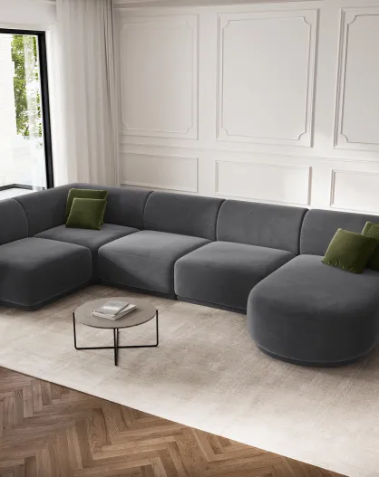 Panoramische hoekbank (linkerzijde) Louis velvet 6 zits donkergrijs - 336x166x74 cm