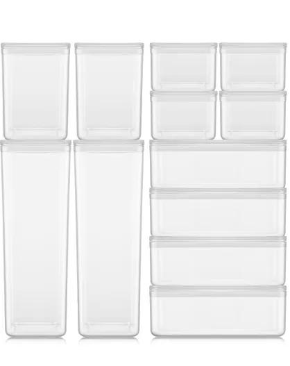 Set van 12 transparante voorraadpotten - 4 x 1L/2 x 1,2L/4 x 0,5L/2 x 2,6L