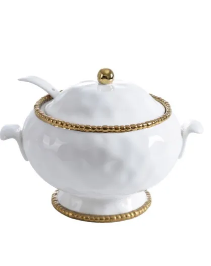 Set van 3 gouden Salerno witte en gouden terrines met pollepel - 27,9x22,9x21,6cm