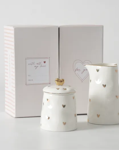 Set - Suikerpot en roomkan Heart To Heart wit en goud