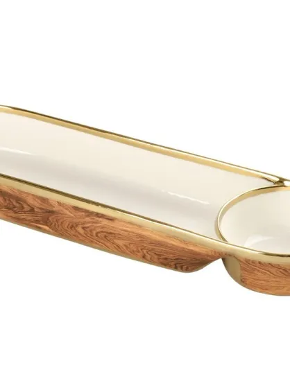 Madera chips- en sausschaal wit hout goud - 42,5x14x6,4cm