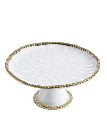 Gouden Salerno taartschaal in wit en goud - 27,9x27,9x12,7cm