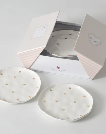 Set van 4 dessertborden Heart To Heart wit en goud - D.17,8cm