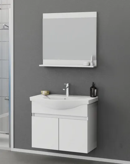 Badkamermeubelset (2 stuks) Mare 80 mat wit - 74,2x70x12 cm