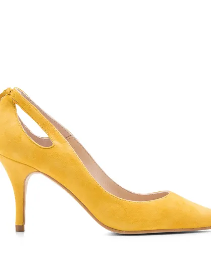14786 Pumps van mosterdkleurig suède met mesh - Hak: 7 cm