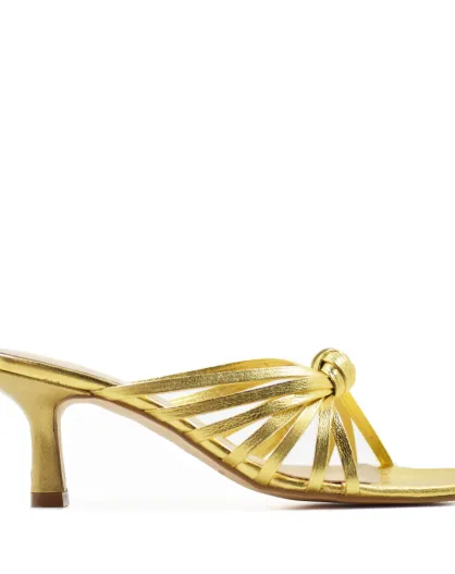 CA-1873 muiltjes in goudkleurig metallic leer met hak - Hak: 6 cm