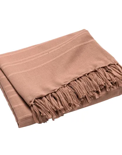Lilia plaid met franjes in mokkakatoen - 180x220 cm