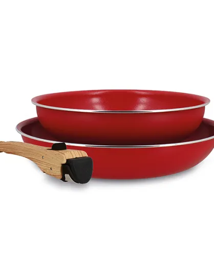 Set van 2 colorama magenta aluminium braadpannen met handvat - 22/26cm