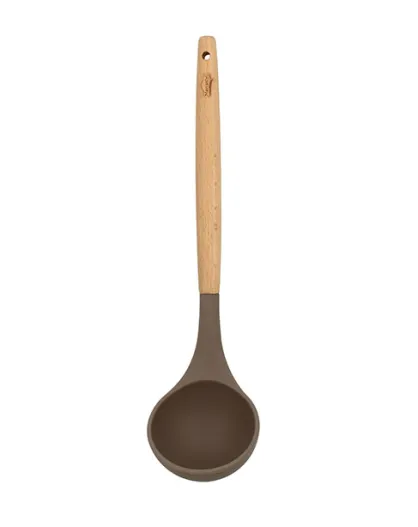 Eliott siliconen pollepel met naturel/taupe beukenhouten handvat - 78x78x315 cm