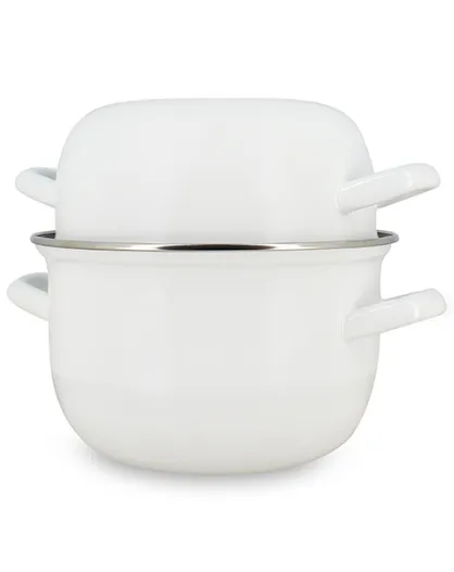Mosselpot van wit geëmailleerd staal - D.18cm
